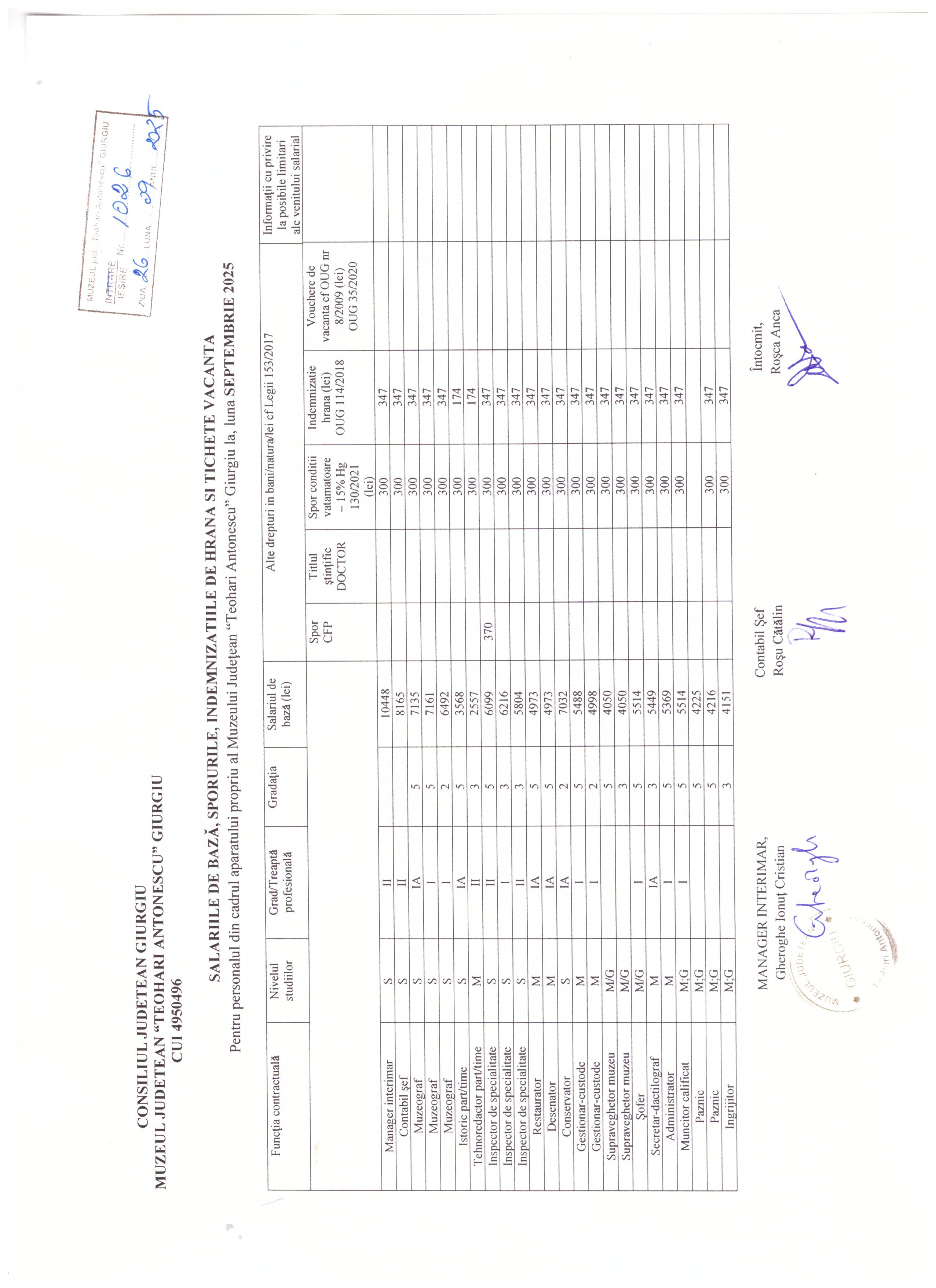 Borderou privind selectia dosarelor pentru ocuparea functiei contractuale vacante de contabil șef Zilele Muzeului giurgiuvean 3 Noaptea muzeelor 1 Evenimentele muzeului 8 Anunturi